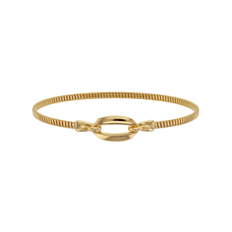 Bracelet rigide maille serpent, attache ovale, argent 925/1000 doré