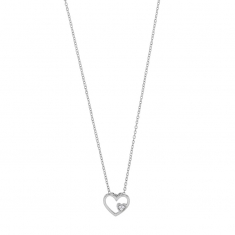 Collier réglable coeur en corindon synthétique rouge, argent 925/1000 rhodié