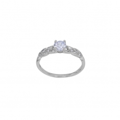 Solitaire serti 4 griffes oxyde 4mm, argent 925/1000 rhodié